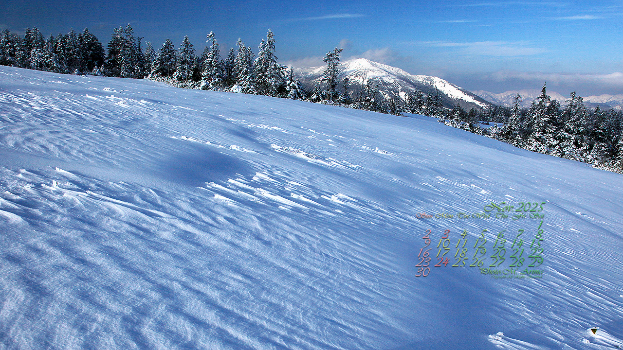 吹雪の翌日,すっかり晴れ上がったその地に立てば,晴天の清澄さに加え,新雪に刻まれた風の痕跡か