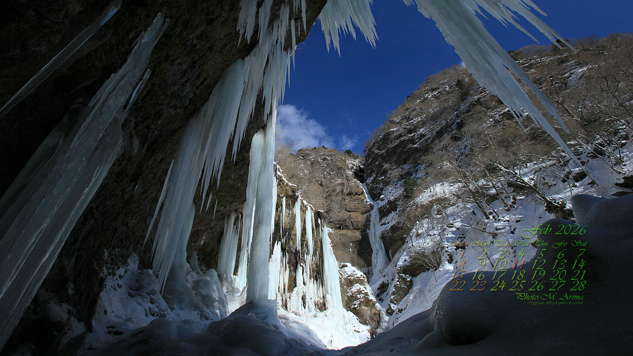 山奥の雲龍渓谷に入るとその両岸は切り立ち,そこから落ちる水が凍り,巨大な氷柱が